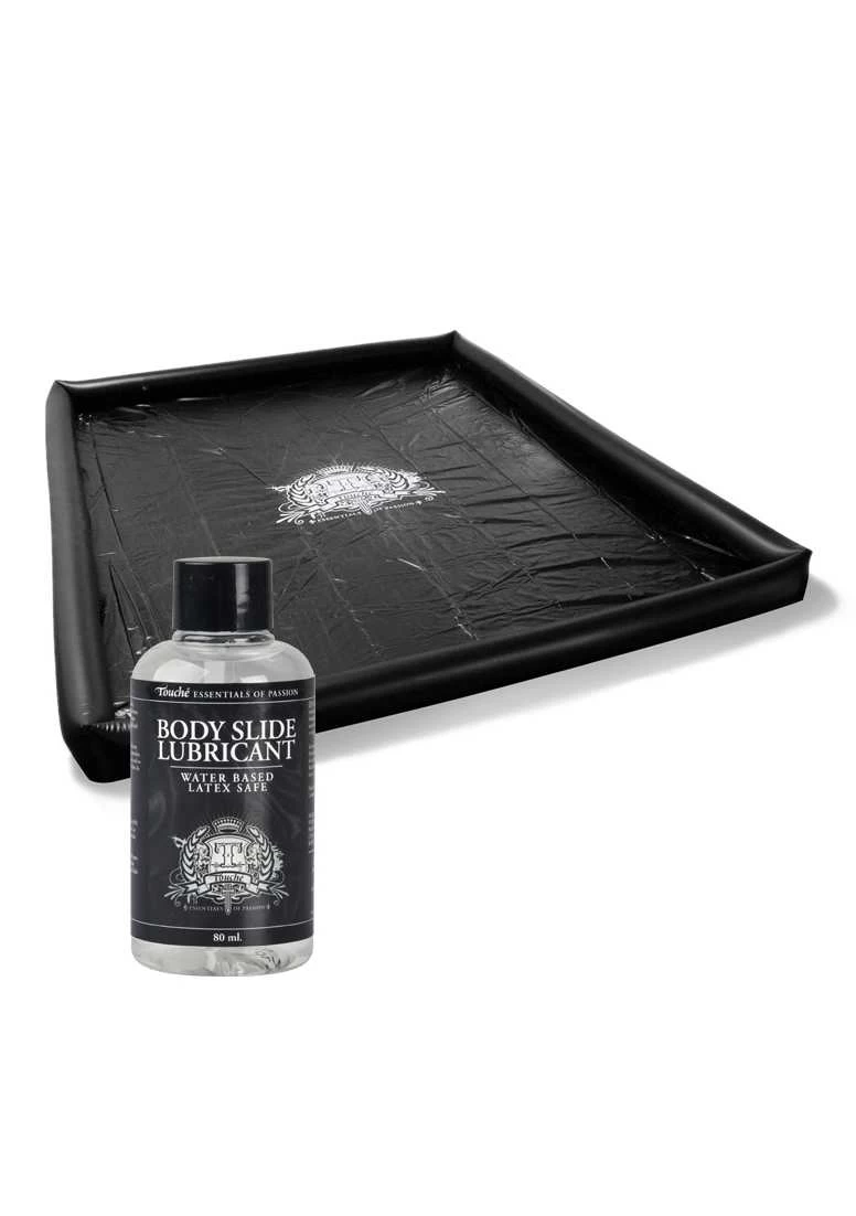 De Body Slide is ontworpen voor reguliere massages en body-to-body massages. De Slide heeft opblaasbare randen zodat je geen troep ervan kan maken. Je kunt het zo vaak gebruiken als je wil want het materiaal is gemaakt van robuust en duurzaam materiaal. Na gebruik is de Body Slide gemakkelijk af te spoelen met water en zeep. Bijgeleverd is een fles met zeer geconcentreerde lubricant. Deze lubricant meng je met water om in totaal 5 liter lubricant te cre?ren. Breng je liefdes leven in een compleet nieuwe dimensie met de Body Slide van Touch?.