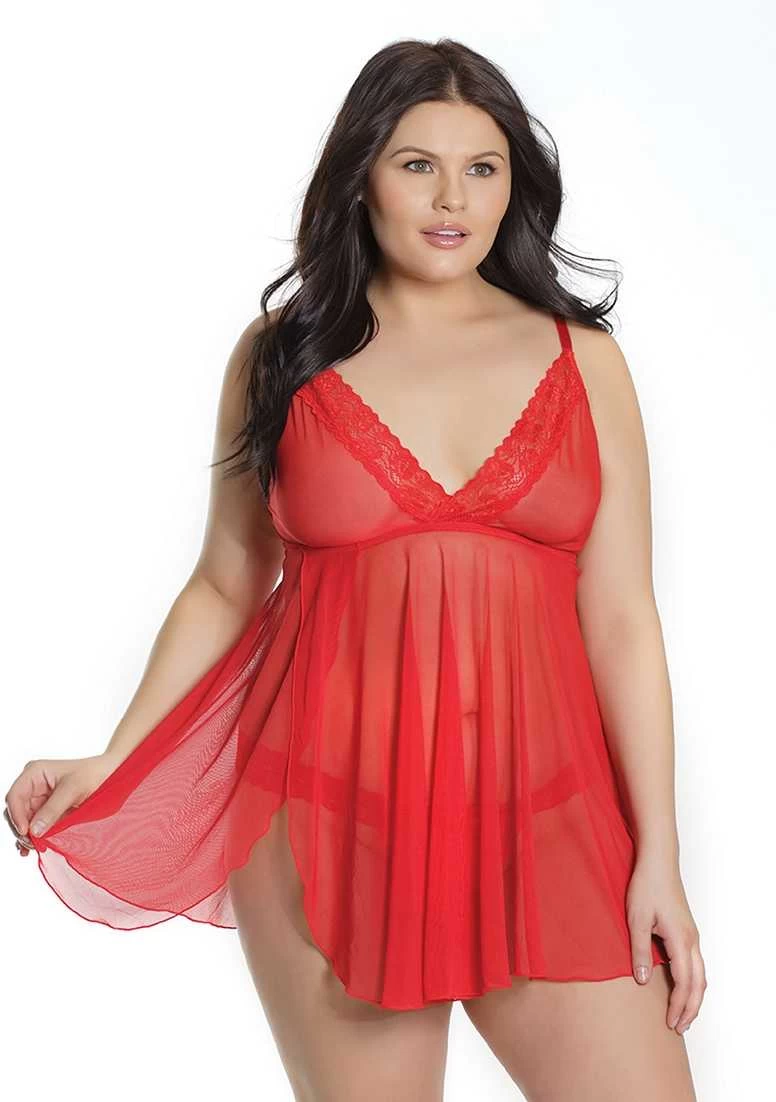 Trim Babydoll And Thong – Red