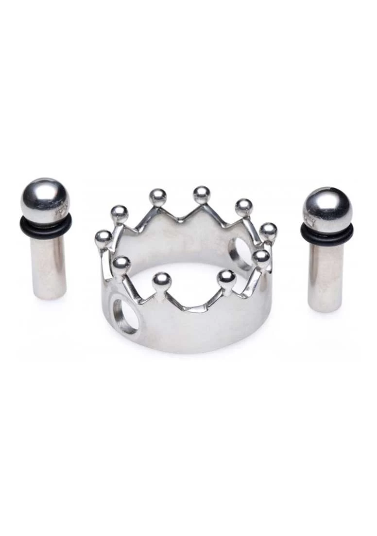 These nipple clamps are fit for royalty! The powerful magnetic clamps of this regal couple are designed to pinch and squeeze your nipples to support the shining metal crowns, giving your nipples a regal BDSM glimmer.The intense magnetic clamps increase your nipple sensitivity, perfect for use during foreplay or to decorate your partners tits as you tie them up in your favorite restraints! Versatile and compatible with all kinds of naughty acts, these Crowned Nipple Clamps are made with nickel free stainless steel so you can enjoy with confidence.Combine these clamps with lingerie or your favorite set of leathers, perfect for BDSM players of every level!