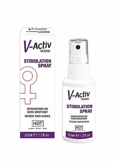 HOT V-ACTIV STIMULATION SPRAY for Women The V-ACTIV Stimulation Spray for women is a high quality spray especially for erotic pleasure. Exhilirating and erotic stimulant effect. With a few pumps completely wet the outer labia and clitoris. The advantage of sprays is the easy and hygienic handling and the quick application.