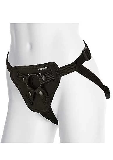 The Luxe Harness is sleek in design with simple lines and a comfortable construction. Easily adjustable up to 69 with pull-to-tighten straps open crotch and rear and a snap front for swapping out attachments. Made of smooth Black neoprene the Luxe works with all Vac-U-Lock attachments as well as strap-on compatible toys. Includes two O-rings. Designed for use by women and men. Washable.