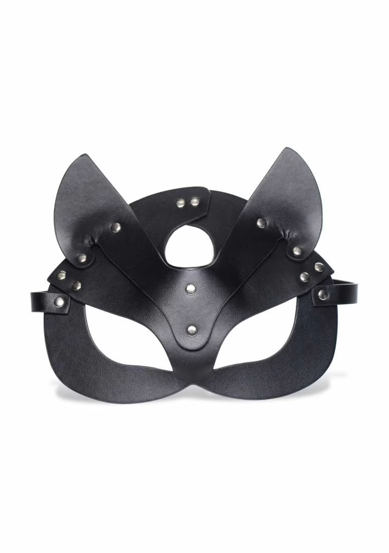 Act out your animalistic fantasies with the Naughty Kitty mask… Slip it on for a frisky foray with friends or private party with your partner. They will be eager to make you purr as you slink around like a well-behaved pet or a feral feline. The vegan-friendly material may be cruelty-free… but that does not mean you have to be! The nickel-free metal studs and the adjustable strap ensure that it is compatible with most people – or rather cats. Designed with raw sex appeal in mind the ears and cut-outs are flattering and irresistible. Measurements: Mast is 9.25 inches in width. 7.25 inches in height. Strap adjusts from 22 to 17 inches in circumference.