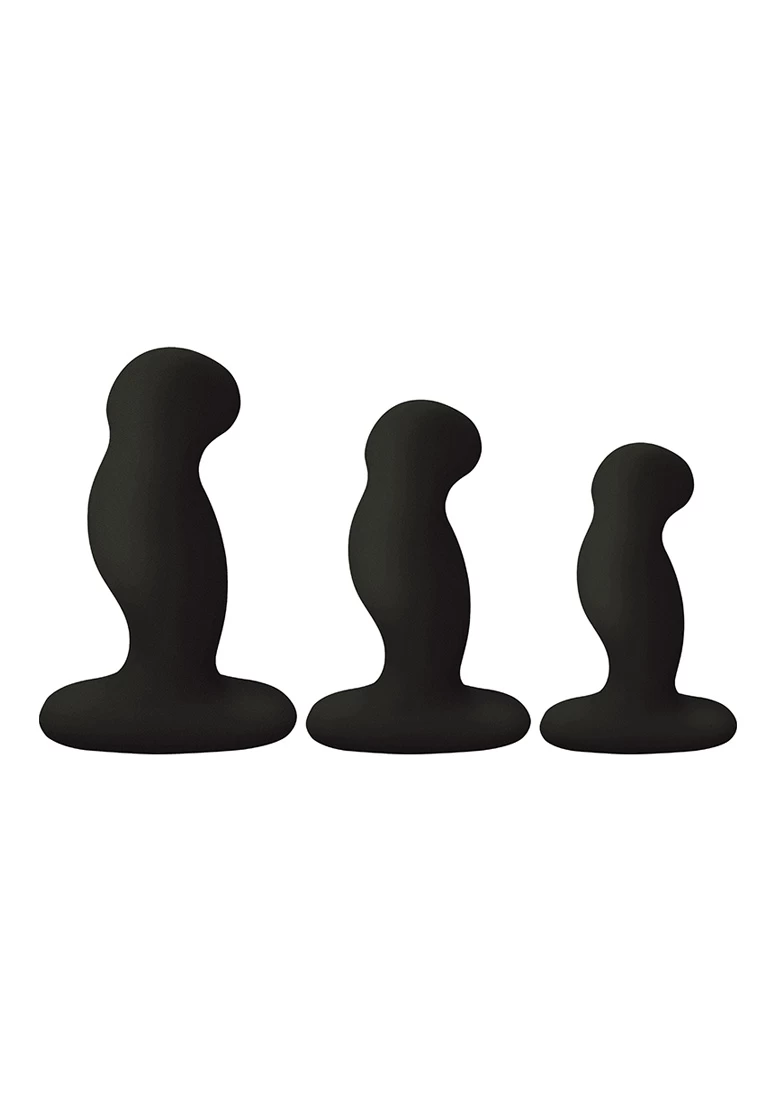 GPLAYTRIO+ Unisex Rechargeable Vibrator Pack S/M/L – Black – The Nexus G play Trio is a selection of three vibrators in different sizes giving you the freedom to explore!Each is ergonomically designed with a super smooth silicone shaft that can be used anally or vaginally. To experience the 6 different stimulation settings simply push the button at the base of each. The silicone outer can be removed for cleaning or to use as a non vibrating finger vibrator!The three sizes give you the ability to explore your senses and if used anally to work your way up.