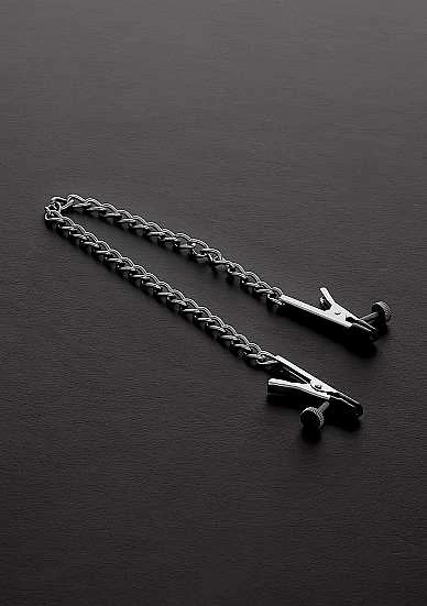 Verstelbare tepelklemmen gemaakt van roetsvrijestaal. Deze grote klemmen met alligatorstijl zijn geweldig voor tepelspel. De uiteinden van deze klemmen zijn van een vinyl laag voorzien wat zorgt voor een zachter gevoel tegen de tepels. De intensiteit van de spanning is makkelijk verstelbaar met de schroef.